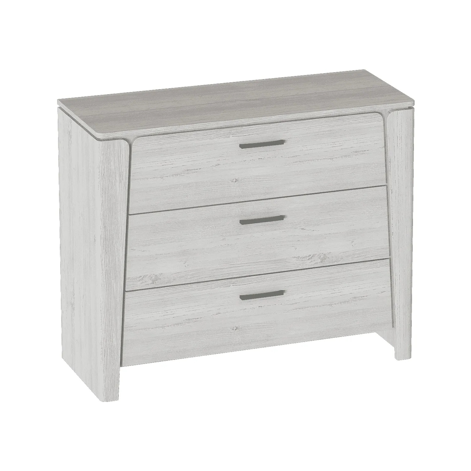 Вместительность комода обеспечивает три выдвижных ящика, которые идеально подходят для хранения одежды, постельного белья и других личных вещей. Каждый ящик оборудован шариковыми направляющими, обеспечивающими плавный и бесшумный ход при использовании. Благодаря этому, вы сможете быстро и без лишних усилий найти нужную вещь и так же легко вернуть ящик на место.