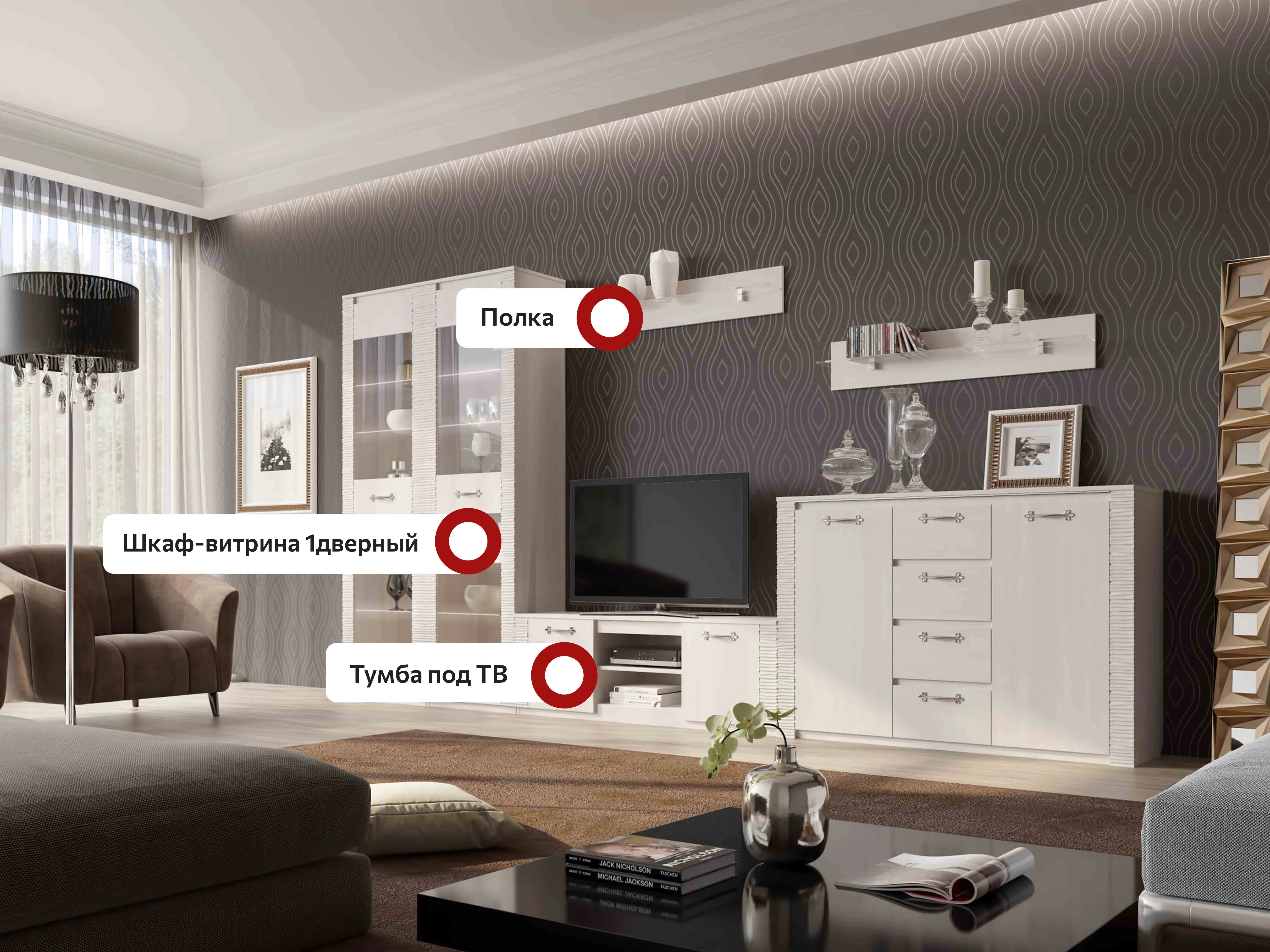 Полка "Элана" гостиная Бодега Белая Полка "Элана" гостиная Бодега Белая Полка "Элана" гостиная Бодега Белая